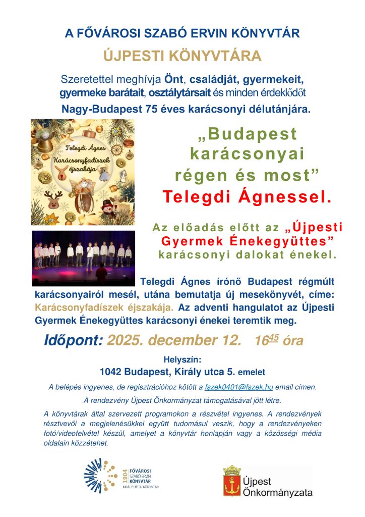 Budapest karácsonyai régen és most című előadása Telegdi Ágnessel.