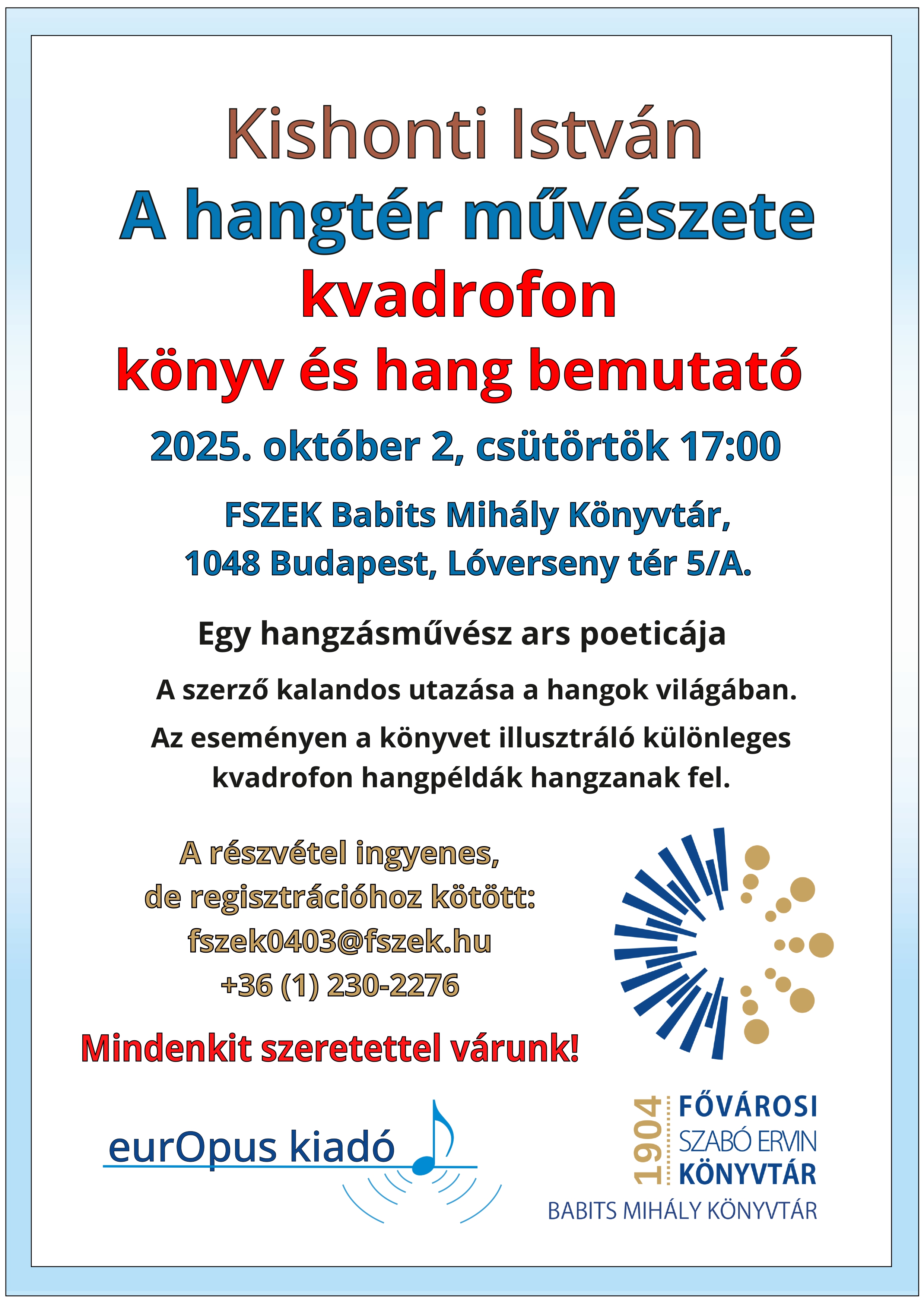 Mindenkit szeretettel várunk a kvadrofon könyv- és hangbemutatón!