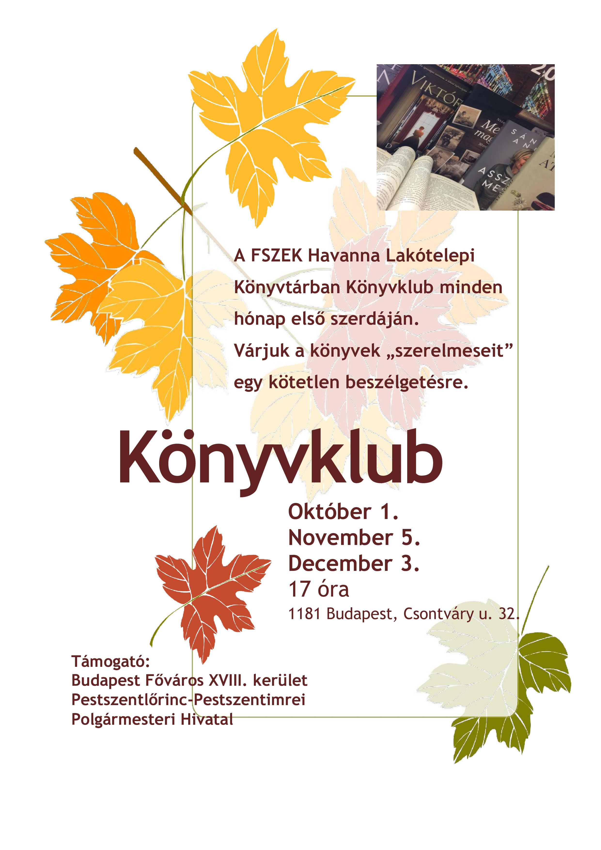 Ősszel újra indul a Könyvklub a Havanna Lakótelepi Könyvtárban. Várjuk kedves Olvasóinkat.