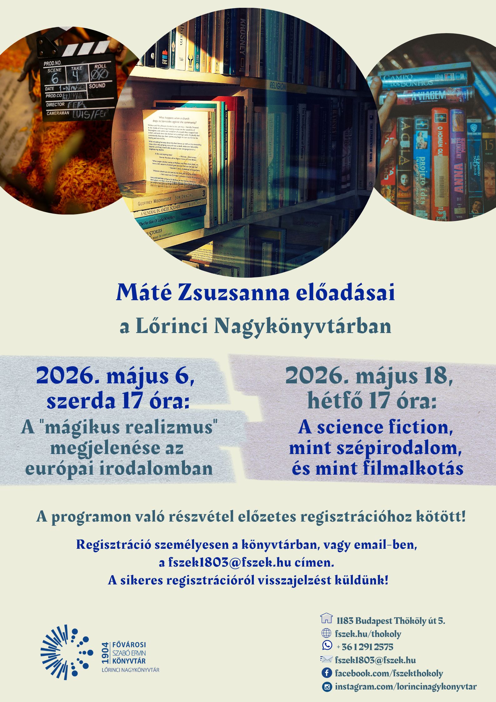 Máté Zsuzsanna előadásai a Lőrinci Nagykönyvtárban