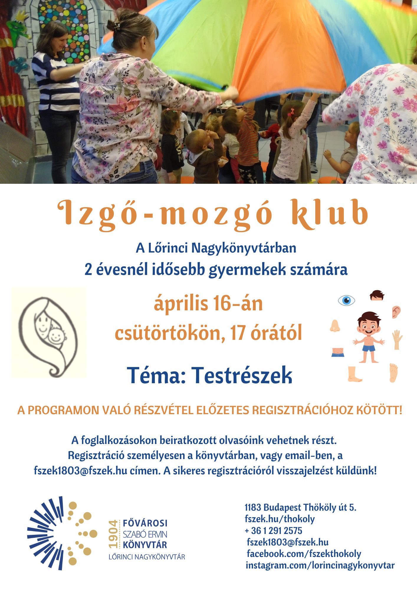 Regisztráció: beiratkozott olvasók számára, személyesen a könyvtárban, vagy e-mailben lehetséges a fszek1803@fszek.hu e-mail címen.