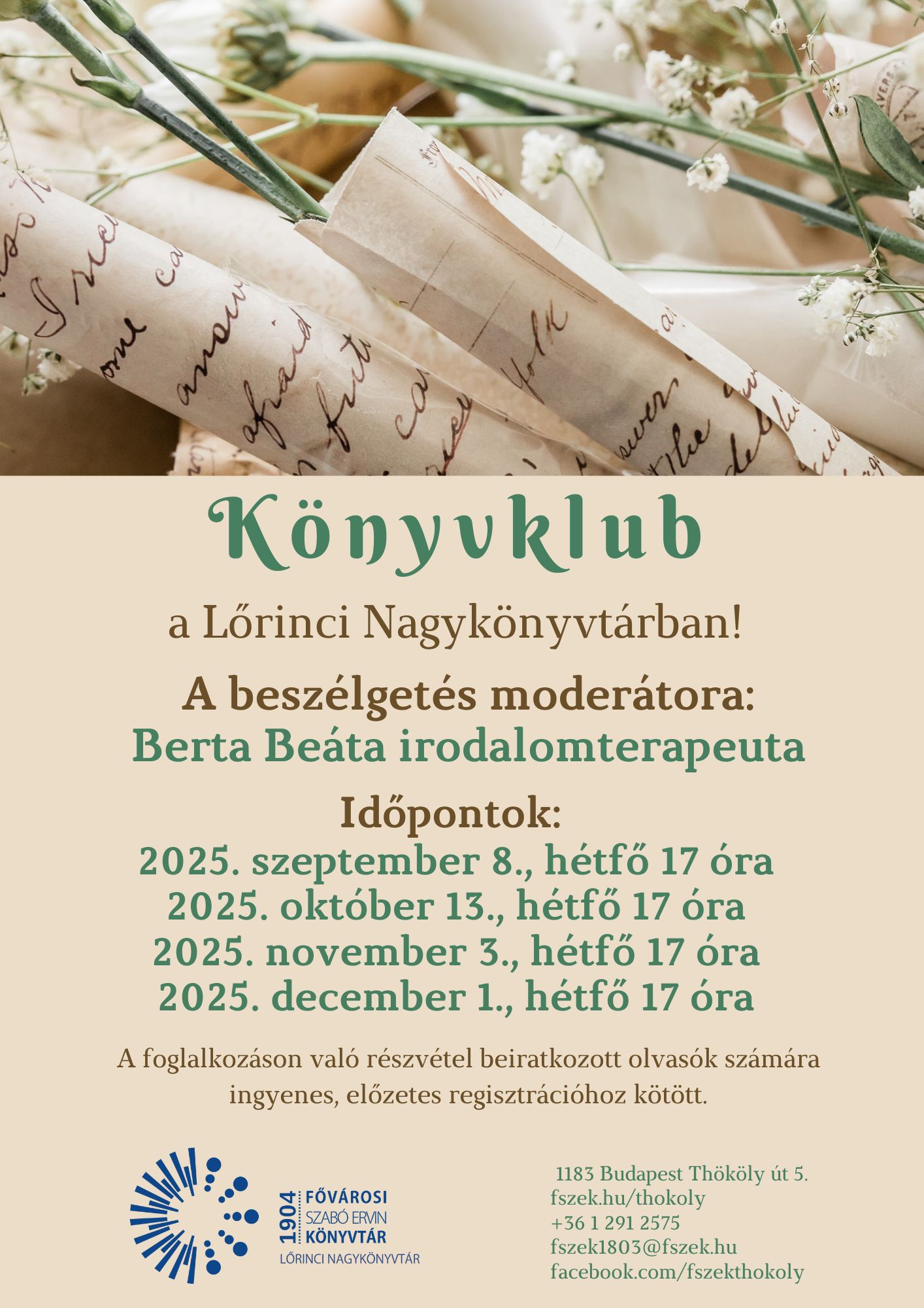 Helyszín: Lőrinci Nagykönyvtár, 1183 Budapest, Thököly út 5.
