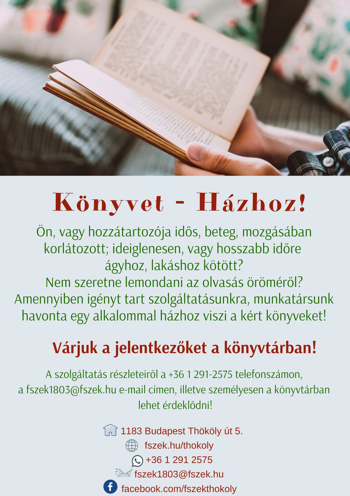 A szolgáltatás részleteiről a +36 1 291-2575 telefonszámon, a fszek1803@fszek.hu e-mail címen, illetve személyesen a könyvtárban lehet érdeklődni!