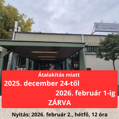 Üllői úti Könyvtárunk 2025. december 24. és 2026. február 1. között átalakítás miatt zárva tart.