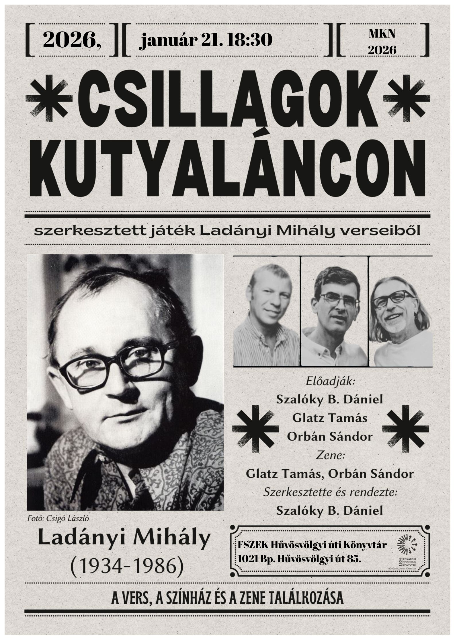 Az eseményen Ladányi Mihály verseiből szerkesztett játékot nézhetnek meg.