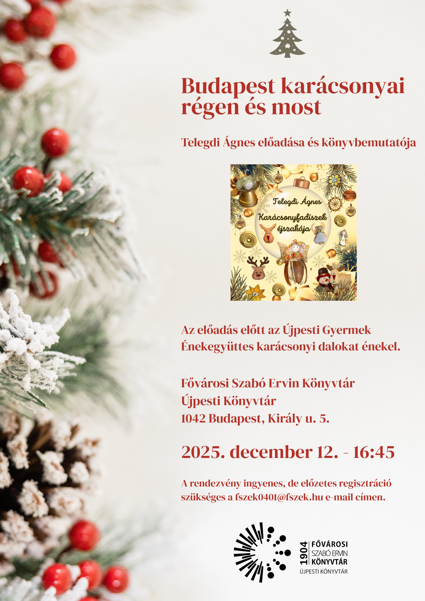 Telegdi Ágnes írónő Budapest régmúlt karácsonyairól mesél, utána bemutatja új mesekönyvét, címe: Karácsonyfadíszek éjszakája.