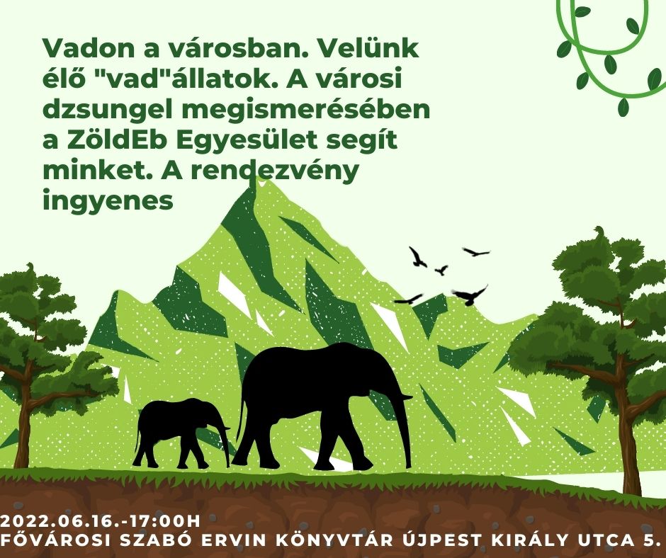 Beszélgető sorozatunk következő alkalmával a városban előforduló vadállatokról fogunk beszélgetni. Rovarok, madarak, emlősök élnek velünk, akiket alig érzékelünk. Róluk hallunk a ZöldEb alapítvány képviselőjétől.