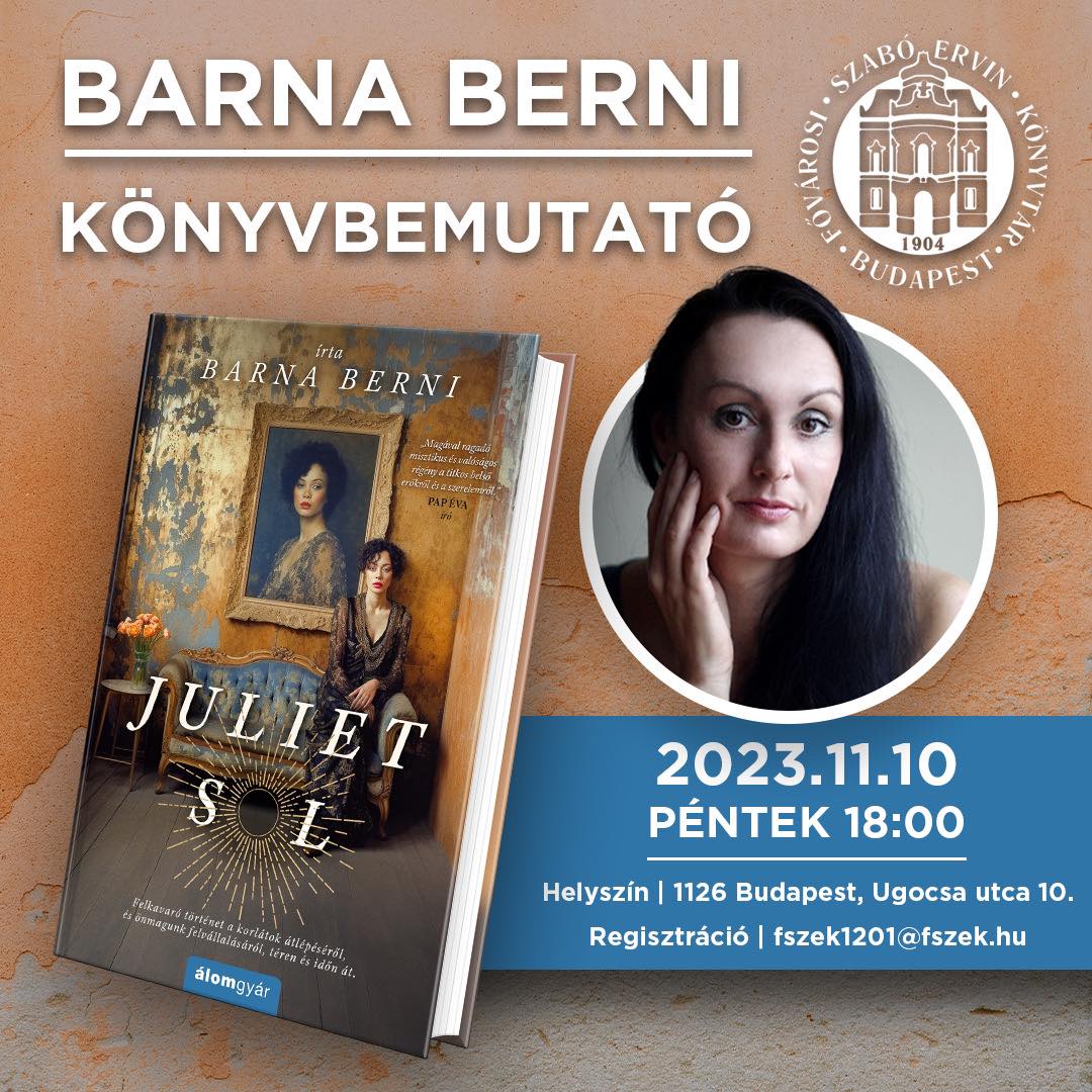 Szeretettel várunk minden kedves érdeklődőt Barna Berni első regényének könyvbemutatójára és közönségtalálkozójára!