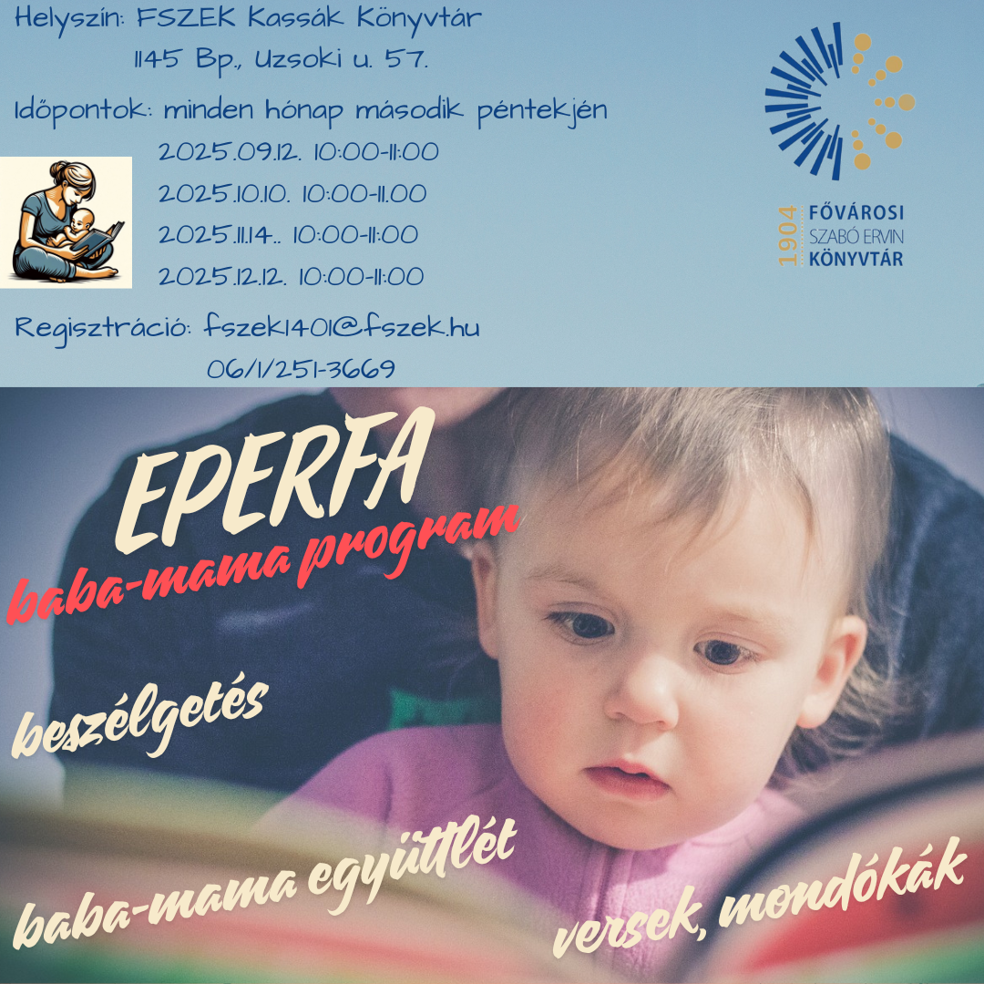 Baba-mama programsorozat indul a 0-1 éves babájukkal kimozdulni vágyó szülők számára a Kassák Könyvtárban. Könyvek által inspirálódva, elfogadó és biztonságos térben beszélgetünk a kisbabás lét és a szülőség témáiról. A programot Király Judit, integrált szülő-csecsemő konzulens és Cselikovics-Mrávics Katalin, a könyvtár munkatársa vezeti.