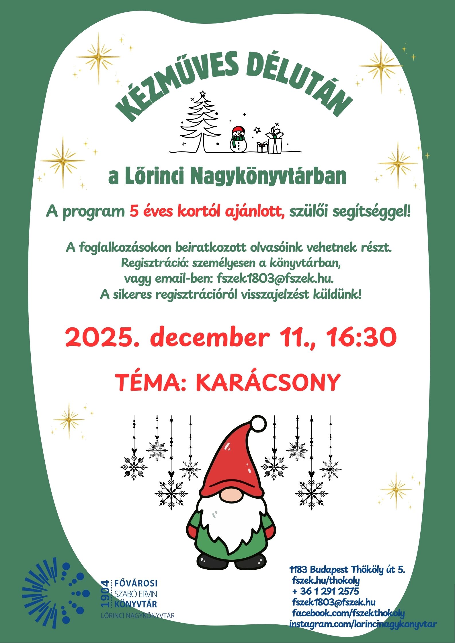 Regisztráció: beiratkozott olvasók számára, személyesen a könyvtárban vagy e-mailben lehetséges a fszek1803@fszek.hu e-mail címen.