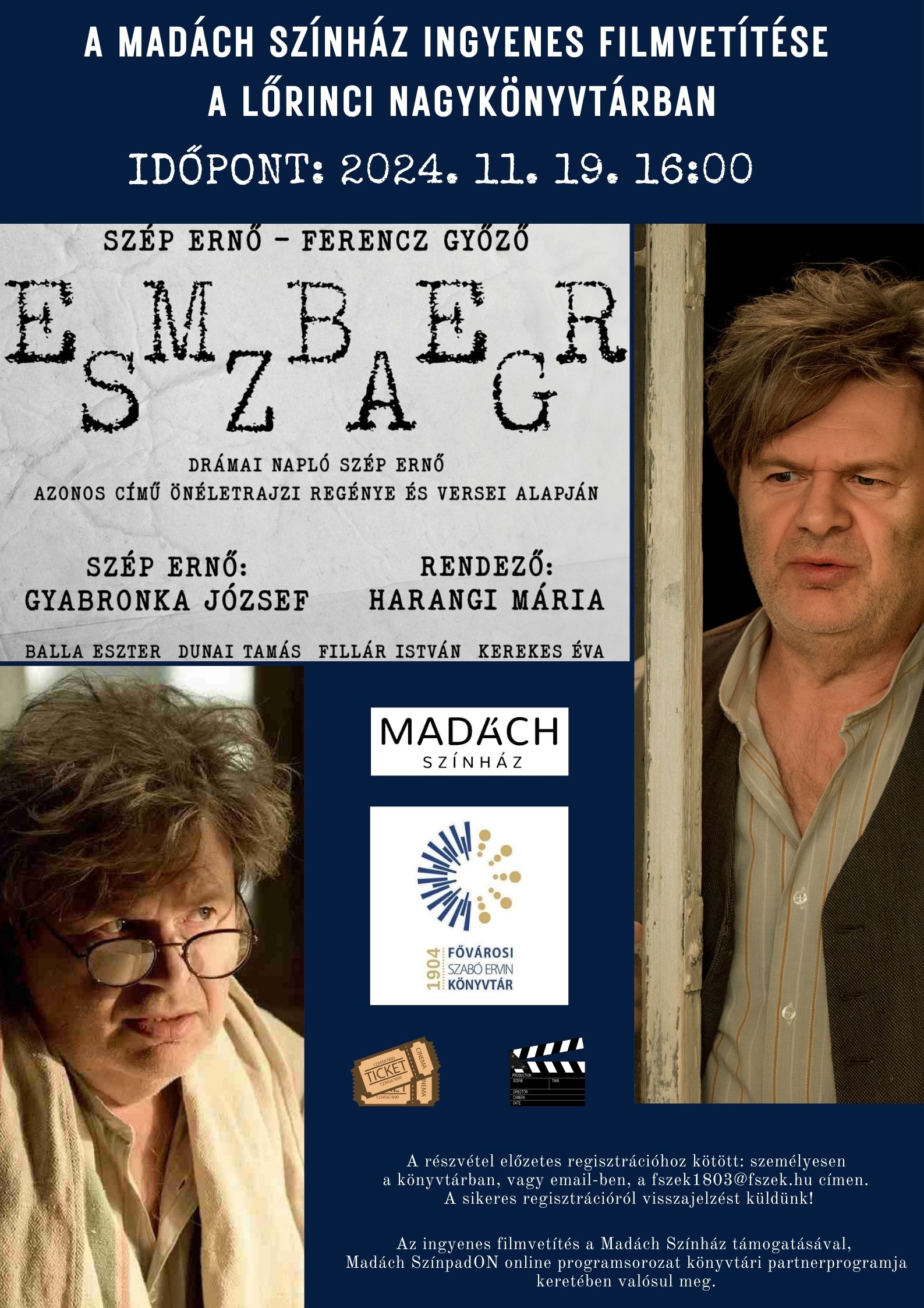 Az ingyenes filmvetítés a Madách Színház támogatásával, a színház Madách SzínpadON című online programsorozatának könyvtári partnerprogramja keretében valósul meg.