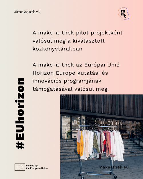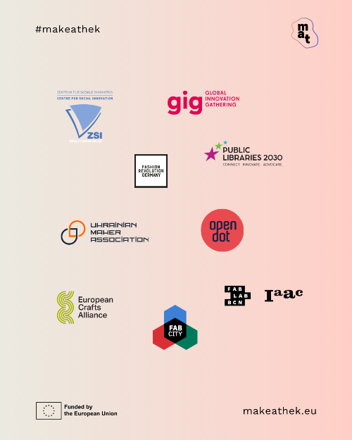 A Make-a-thek projektet az Európai Unió Horizon programja finanszírozza (HORIZON-CL2-2024-HERITAGE-01), és olyan partnereket tömörít, mint a Zentrum für Soziale Innovation (AT), Global Innovation Gathering (DE), Fashion Revolution (DE), OpenDotLab (IT), Public Libraries 2030 (BE), Ukrainian Makers Association (UA), Fab City Foundation (EE) és az Institute for Advanced Architecture of Catalonia (ES).