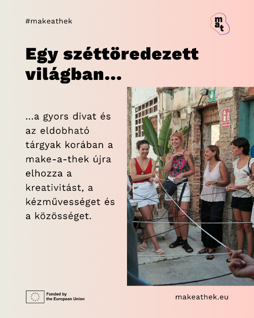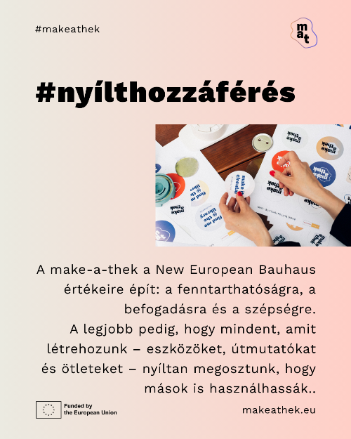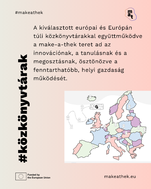 A projekt keretében 9 város – köztük Budapest – közkönyvtáraiban jönnek létre ún. moduláris makerspace-ek, azaz olyan korszerű, rugalmasan átalakítható alkotóműhelyek, amelyek eszközöket, tudást és programokat biztosítanak a helyi közösségek számára. A Make-a-thek a hagyományos kézműves tudást ötvözi a digitális gyártási technológiákkal a fenntarthatóság, a körforgásos gazdaság és a kulturális örökség megőrzése érdekében. A projekt minden elemében összhangban van az Európai Bizottság Új Európai Bauhaus (New European Bauhaus) című kezdeményezésével, melynek célja egy fenntartható, befogadó és esztétikus jövő építése a városokban és közösségekben.