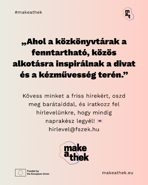 A Túlfogyasztás Világnapján, 2025. július 24-én hivatalosan is elindul a Make-a-thek (teljes nevén: Modular Library Makerspaces for Heritage Crafts Innovation and Digitization = Moduláris könyvtári makerspace-ek az örökségi kézművesség innovációjáért és digitalizációjáért) elnevezésű nemzetközi projekt, amelyben a Fővárosi Szabó Ervin Könyvtár (FSZEK) is kiemelt partnerként vesz részt. A 2025–2027 között megvalósuló kezdeményezés célja, hogy a közkönyvtárakat olyan nyitott, befogadó és fenntartható közösségi terekké alakítsa, ahol a körforgásos divat, a kézművesség és a digitális alkotás új formái valósulhatnak meg.