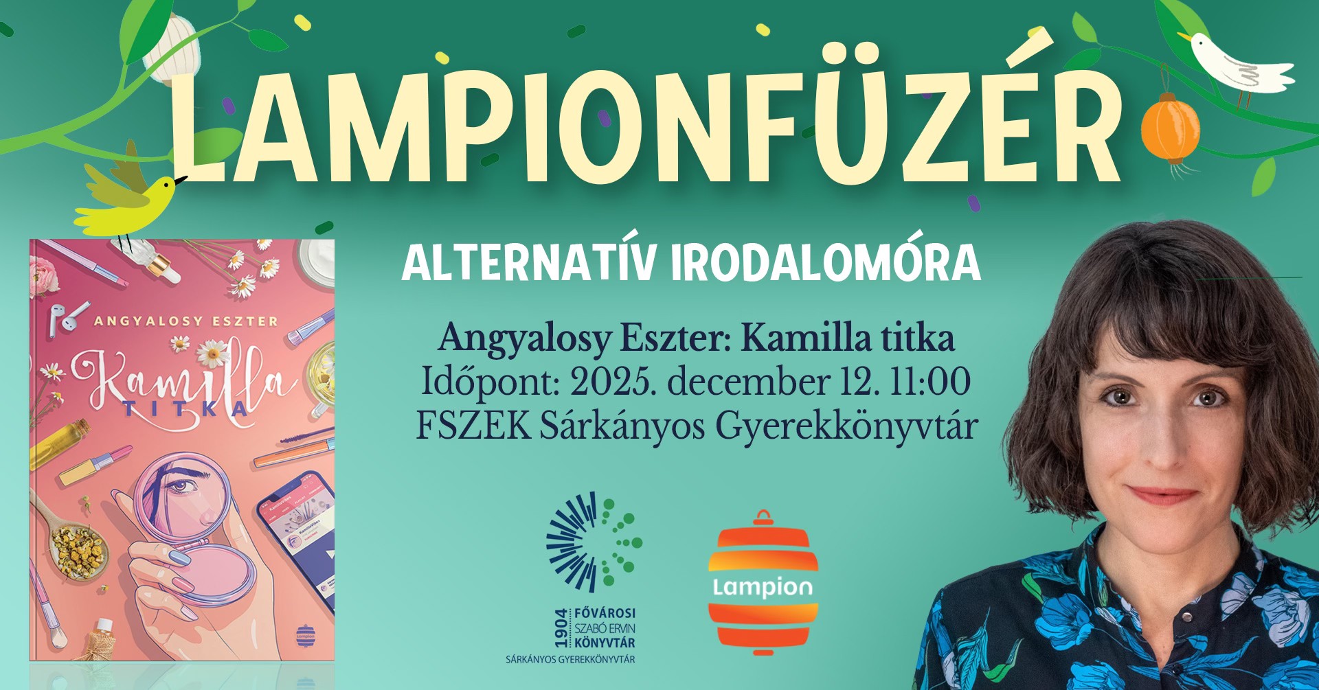 Angyalosy Eszter húsbavágóan aktuális ifjúsági regénye, a Kamilla titka lesz a Lampionfüzér-programsorozat következő eseményének középpontjában.