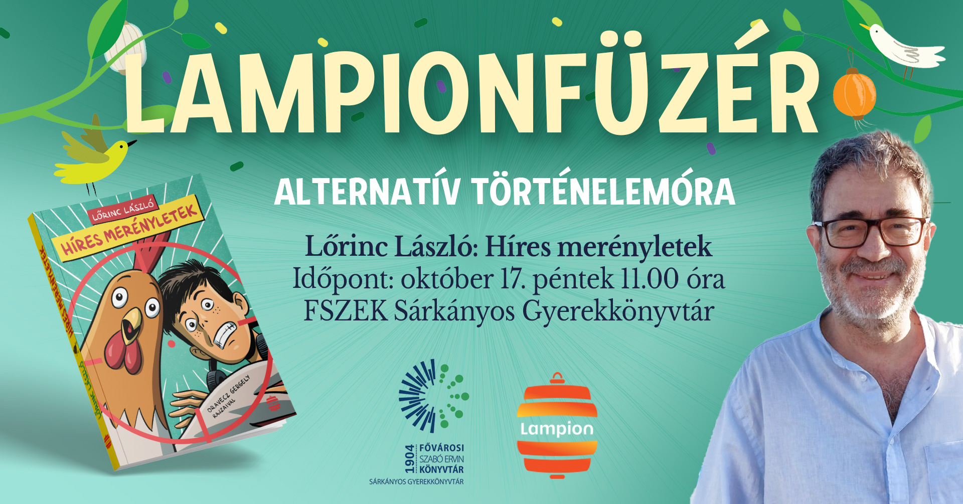 Október 17-én 11:00-tól Lőrinc László várja alternatív történelemórára a 12 éven felülieket Híres merényletek című könyve kapcsán.