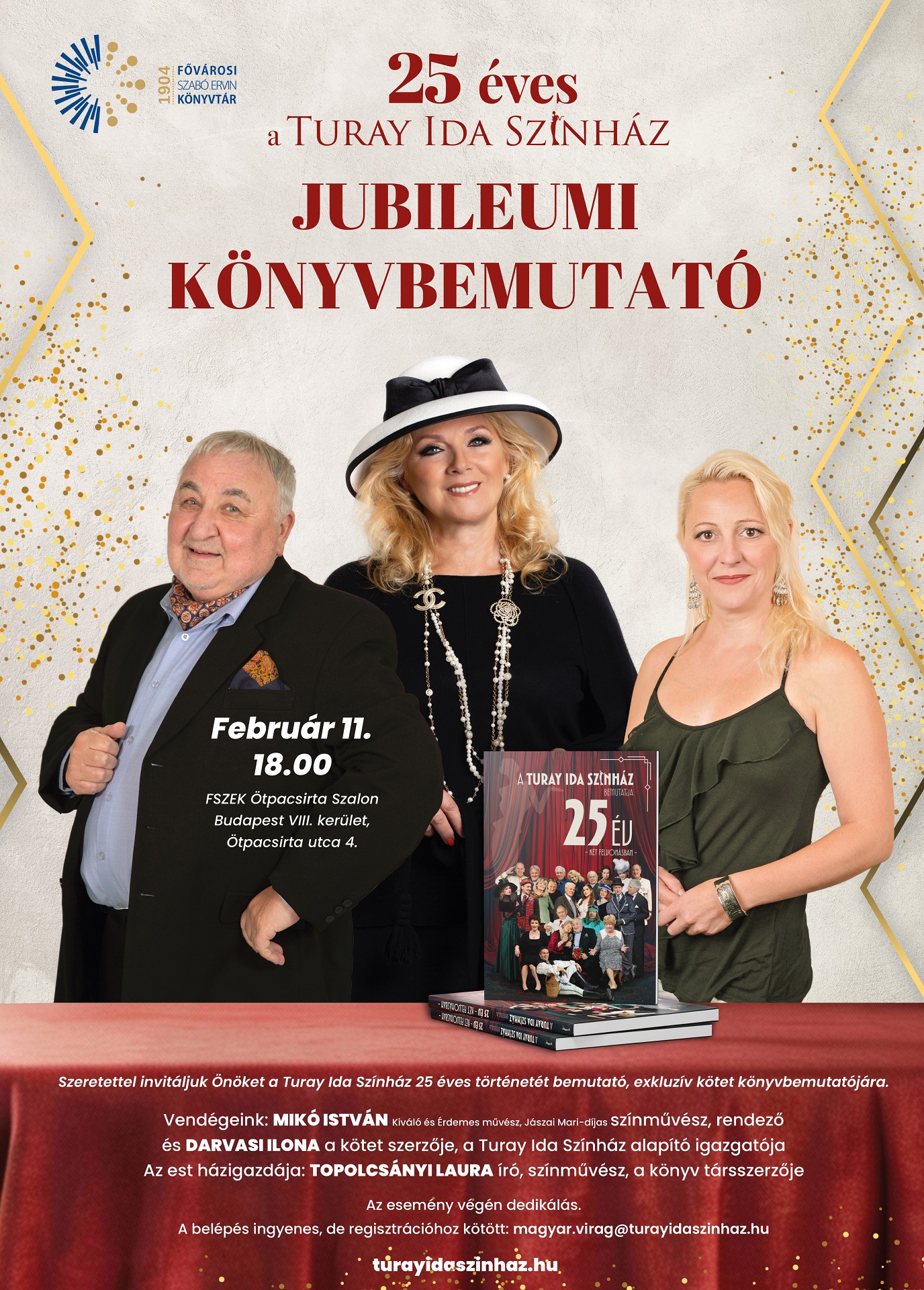 Szeretettel meghívjuk Önöket egy különleges könyvbemutatóra 2026. február 11-én, szerdán az Ötpacsirta Szalonba, ahol bemutatásra kerül a Turay Ida Színház 25 éves történetét feldolgozó exkluzív kötet.