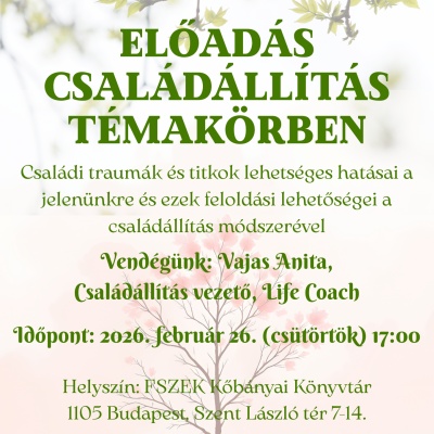 Időpontváltozás! Vajas Anita, Család- és szervezetállítás vezető, Life Coach előadása a Kőbányai Könyvtárban 2026. február 26-án, csütörtökön, 17 órától.