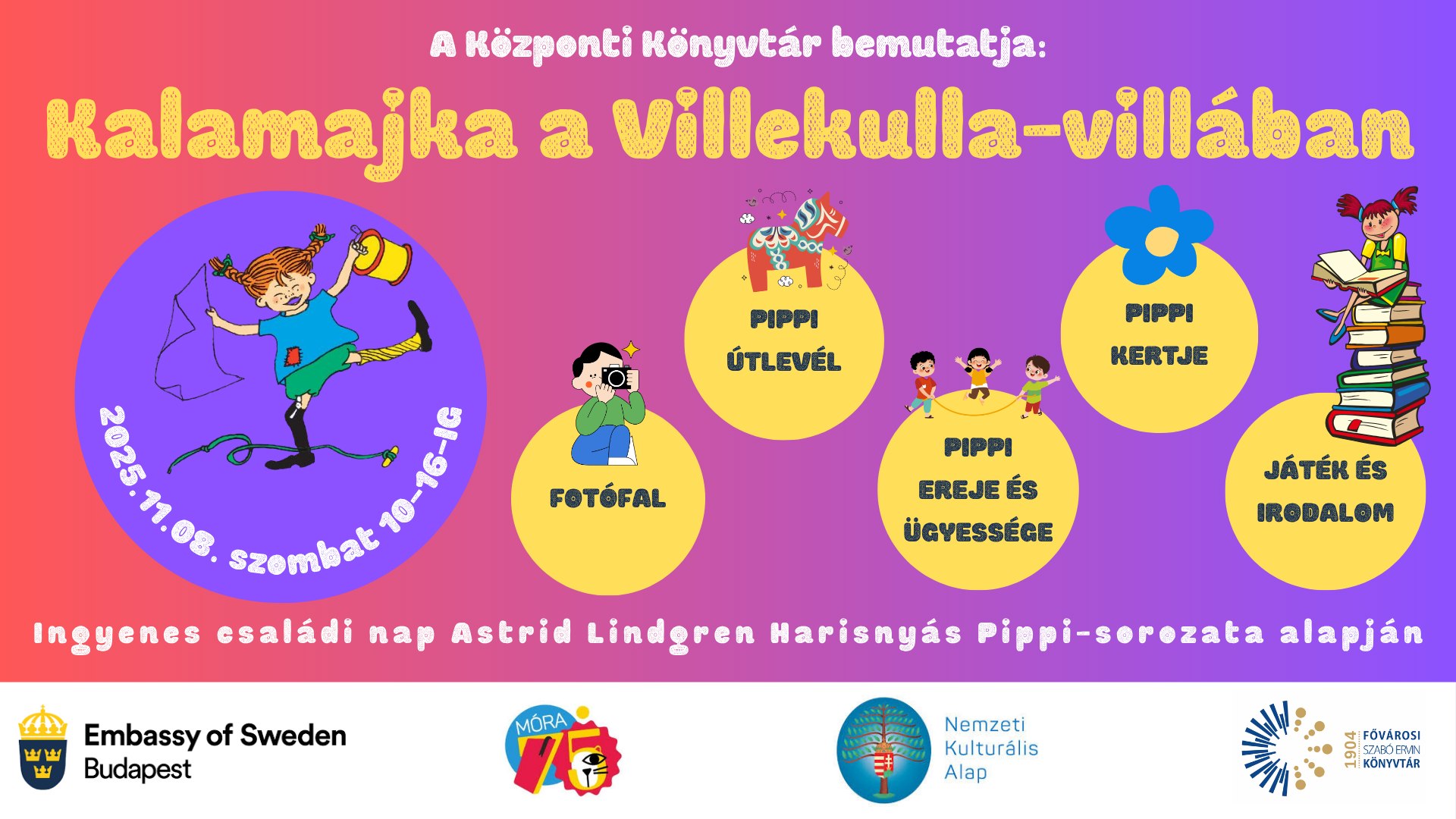 Astrid Lindgren svéd író népszerű Harisnyás Pippi-sorozata immár 80 éve nyújt újabb és újabb gyerekek számára élményt. A Fővárosi Szabó Ervin Könyvtár Központi Könyvtára legújabb családi napját most ennek a sorozatnak világába helyezi.