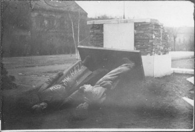 "Ruszkik haza!" Felirat a ledöntött kőbányai Szovjet-magyar barátság emlékművön Nagy József felvétele Azonosító: 056129 |