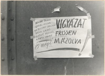 Kézzel írt plakát a Móricz Zsigmond körtéren 1956. október 31. Azonosító: 056626 |