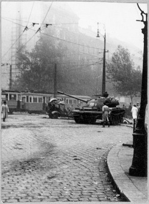 Szovjet tank a Kálvin téren 1956. október 25. Nagy József felvétele Azonosító: 056027 |