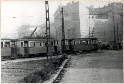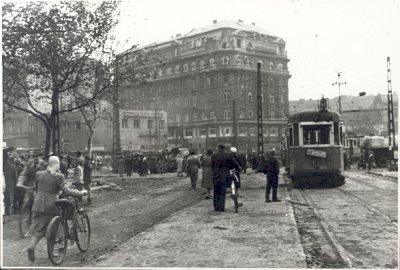 Villamosok a Kálvin téren 1956 Azonosító: 056244 |