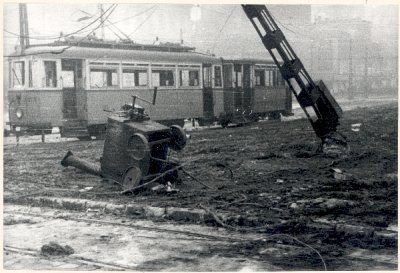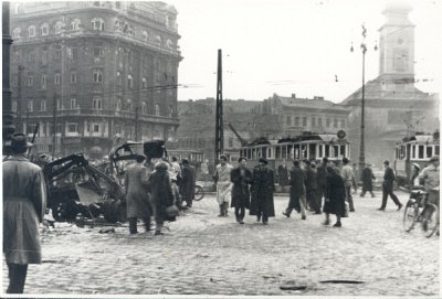 Villamosok és roncsok a Kálvin téren 1956 Azonosító: 056245 |
