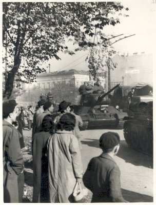 Szovjet tank a Kálvin téren 1956. október 25. Nagy József felvétele Azonosító: 056144 |
