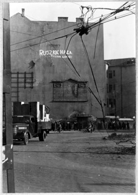 A vörös csillag eltávolítása egy Kálvin téri tűzfalról 1956. október 25. vagy október 30. Azonosító: 056419 |