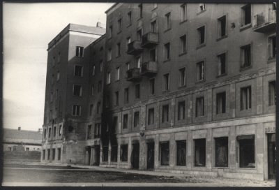 A Körösi Csoma úti (akkor új) lakóház 1956. november 8. Nagy József felvétele Azonosító: 056145 |