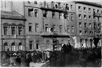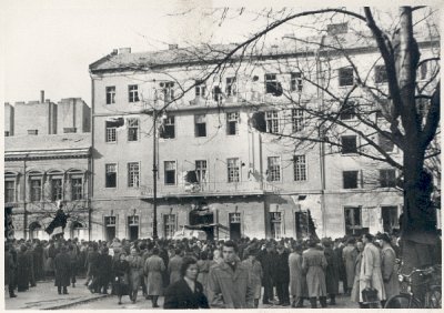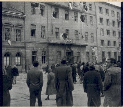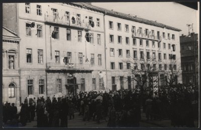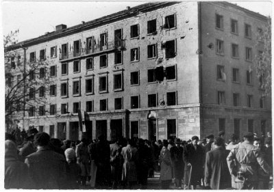 A romos Köztársaság téri pártház 1956. november Azonosító: 056243 |