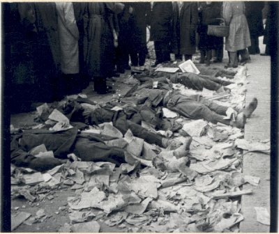 A Köztársaság téri lincselés egyik áldozata 1956. október 30. Nagy József felvétele Azonosító: 056056 |