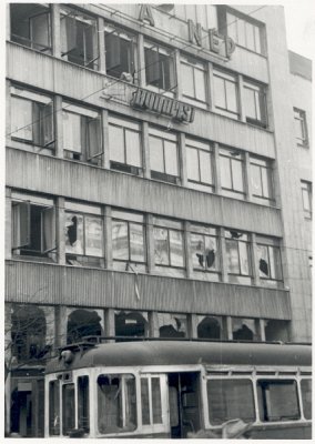 A kép felirata szerint "Szovjet tankok szétverik a tüntetőket" . Ha az emlékezés pontos, akkor a felvétel az MSZMP melletti tüntetés kapcsán kirobbant összetűzésekkor készült 1956. december 6. Nagy József felvétele Azonosító: 056037 |