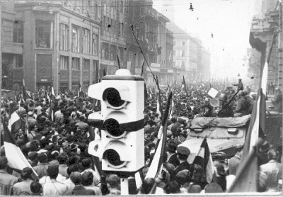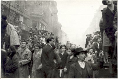Tömeg a Kossuth Lajos utca elején 1956. október 25. Nagy József felvétele Azonosító: 056048 |