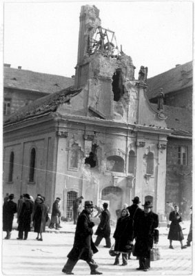 A romos Rókus kápolna a Rákóczi úton 1956. november 4. után Azonosító: 056331 |