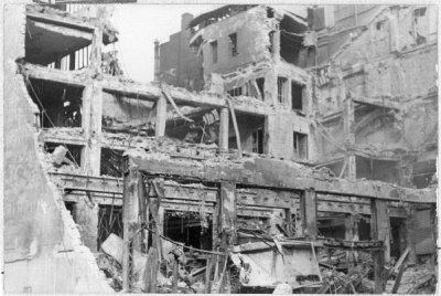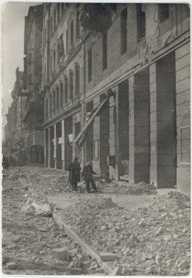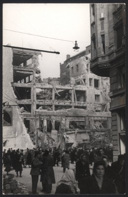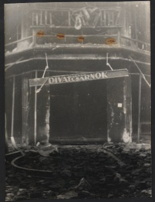 A Magyar Divatcsarnok romjai a Rákóczi úton 1956. november 4. után Eötvös Gyula felvétele Azonosító: 056555 |