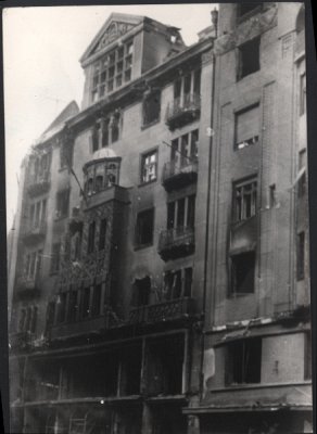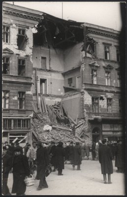 Romház a Rákóczi úton a Huszár utcánál 1956 Eötvös Gyula felvétele Azonosító: 056558 |