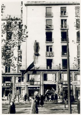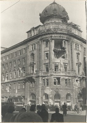 A Rákóczi út és a Nagykörút sarkán álló épület (Lásd még a Blaha Lujza térnél) >>> 1956. november 13. Azonosító: 056230 |