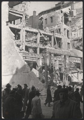 A Magyar Divatcsarnok romjai a Rákóczi úton 1956. november 4. után Nagy József felvétele Azonosító: 056318 |