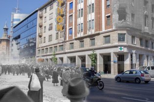 események történhettek. Összeállításunkban arra teszünk kísérletet, hogy korabeli és jelenkori fotókból készített montázsok segítségével kapcsoljuk össze a forradalmi és a mai Budapestet. A virtuális tárlatot korabeli fényképekből készített izgalmas