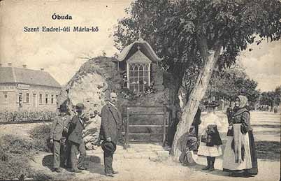 A Duna áradásakor a vízből kihalászott Mária-kép az aquincumi római vízvezeték romjain. A követ 1932-ben a HÉV-sínek lefektetése miatt áthelyezték, a megrongálódott kegyképet az 1960-as években kicserélték; az 1865-ben felszentelt, a kép eredetijét ma is őrző kápolna jelenleg a környék plébániatemploma.