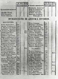 A Pesti Kegyesrendiek Gimnáziumának 1818. évi értesítője A huszonnyolcadik a névsorban Kossuth Lajos.