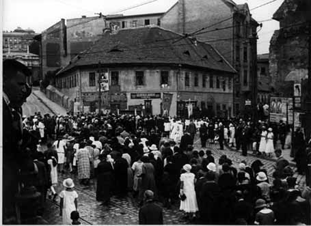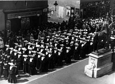 Az Angolkisasszonyok rendház leányai könyörgő körmenetben, 1915.