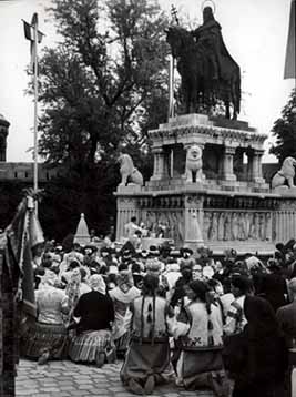 Gyónás a Hősök terén az eucharisztikus kongresszus idején.