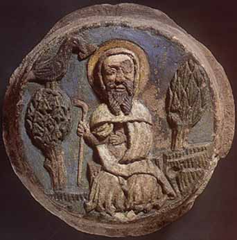 Budán előkerült faragott zárókő Remete Szent Pál ábrázolásával.