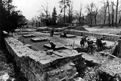 Ásatási munkák a budaszentlőrinci kolostorromoknál 1997-ben (Budakeszi út 91.).
