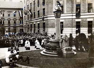 A pálosok emlékére emelt békekút felszentelése 1916. október 8-án a Práter utcai "kispapok kertjében". A szobrot, amelyet a chestochowai Madonna-kép alapján formázott meg Ligeti Miklós, 1935-ben áthelyezték a papnevelő intézet udvarára.