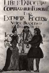 Keresztelés, házasságkötés, halál. Rajzok az óbudai plébániatemplom anyakönyveiből, 1718.