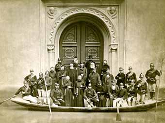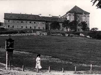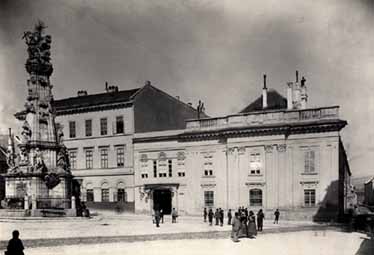 A jezsuita akadémia egykori épülete 1895 körül. Kétéves filozófiai fakultás után a papi pályára készülők további egyéves teológiai képzést kaptak. Az akadémiának 1757-ben csaknem 800 hallgatója volt. Emeleti aulája ünnepélyes disputációknak, színielőadásoknak adott helyett. Fénykorában Magyarország legszebb, legjobban felszerelt iskolájának tartották.
